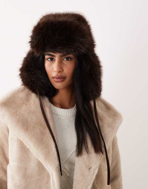 Gina Tricot – Mörkbrun öronlappsmössa i fuskpäls