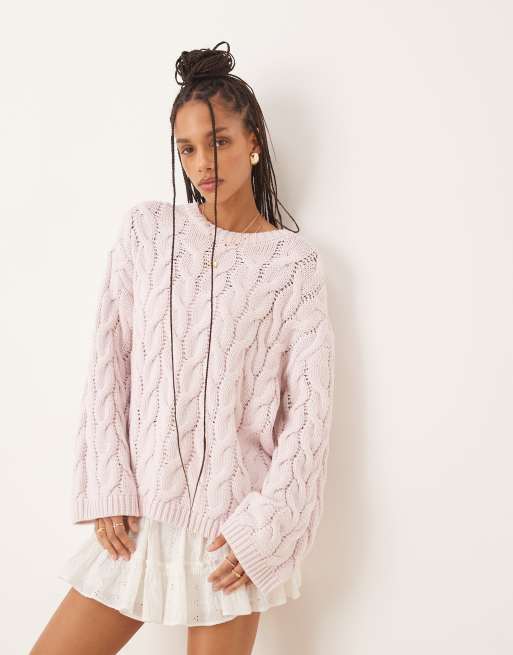 Gina Tricot – Rosa, flätstickad sweatshirt i oversize