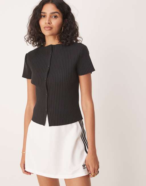 Gina Tricot – Svart, ribbad topp med korta ärmar och knappar framtill