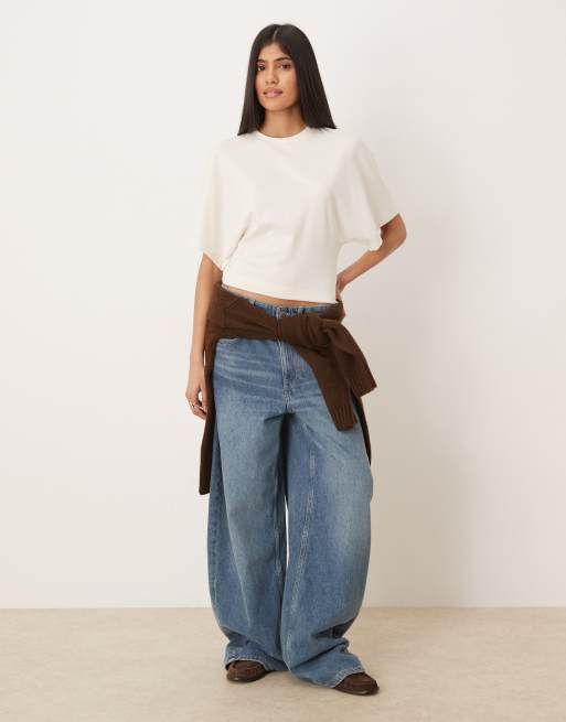 Gina Tricot – Vit topp med korta ärmar och markerad midja