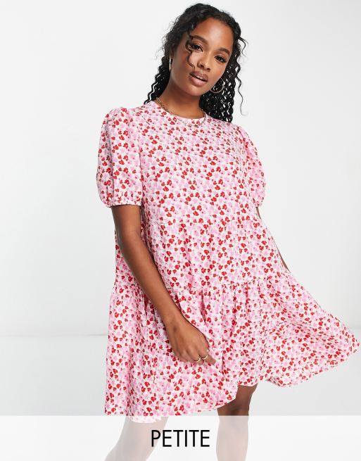 Glamorous Petite – Rosa småblommig panelsydd smockklänning i minilängd