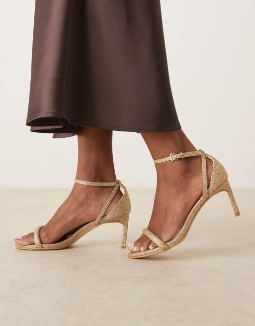 Glamorous Wide Fit – Guldglittriga, klacksandaler med smala remmar och bred passform