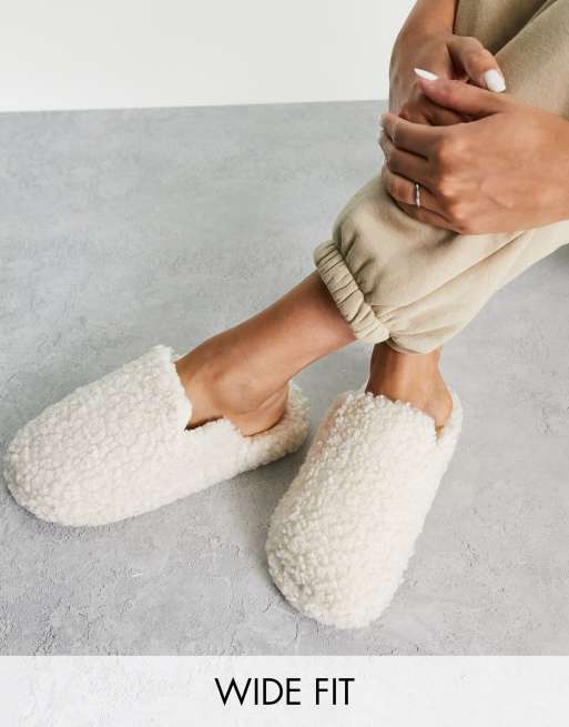 Glamorous Wide Fit – Krämfärgade fluffiga tofflor