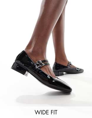 Glamorous Wide Fit – Svarta, lackade Mary Jane-skor med två remmar