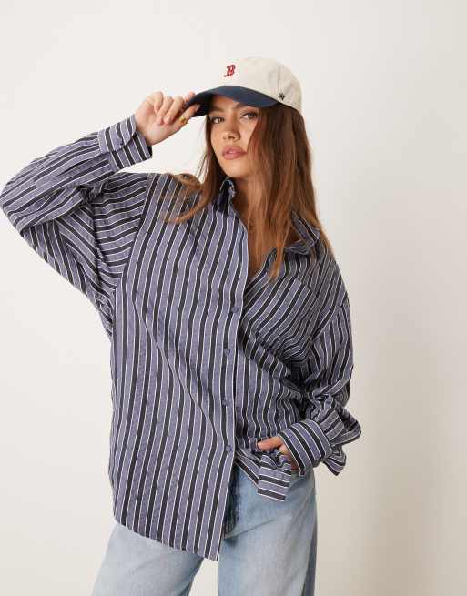 Glamorous – Blå och grårandig skjorta i poplin och oversize med boxig passform