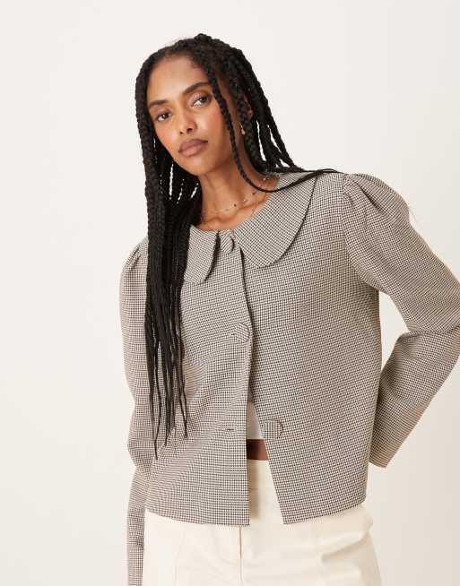 Glamorous – Brun, hundtandsmönstrad, kort jacka i skepparkavajstil