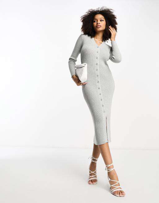 Glamorous – Grå ribbad koftklänning med knäppning framtill