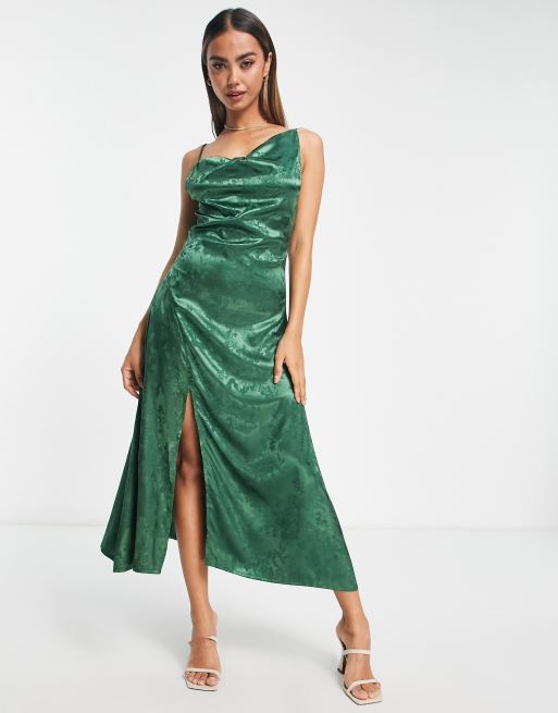 Glamorous – Grön asymmetrisk och midilång shiftklänning i jacquard