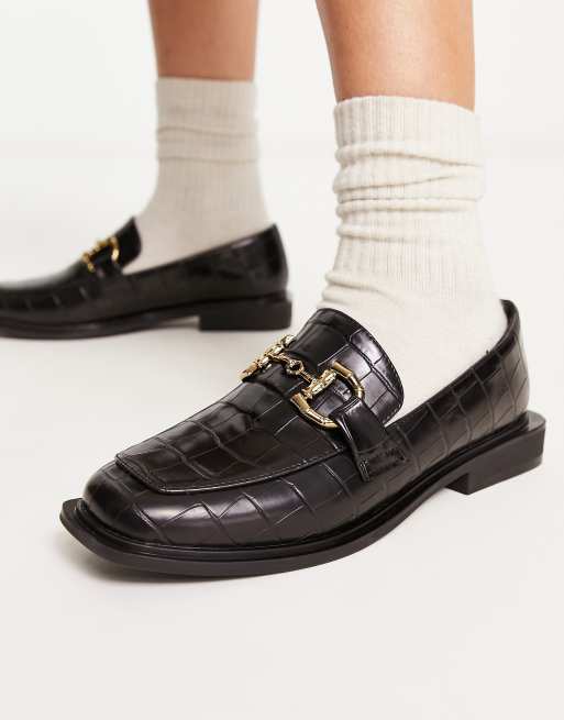 Glamorous – Horsebit – Svarta krokodilskinnsmönstrade loafers