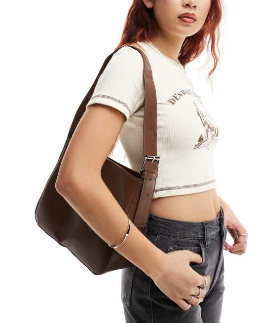 Glamorous – Ljusbrun, stilren axelremsväska