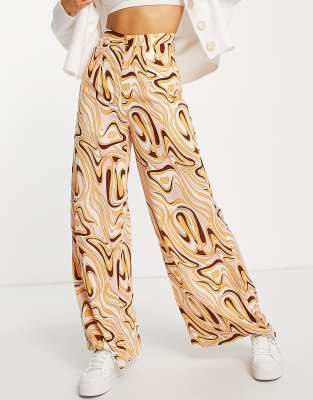 Glamorous – Marmormönstrade vida byxor med hög midja