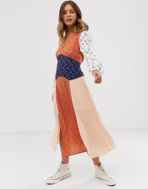 Glamorous – Midaxiklänning med blandade mönster och slits framtill