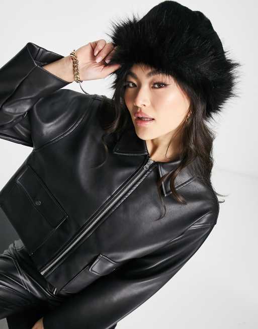 Glamorous – Svart exklusiv solhatt av fuskpäls i oversize