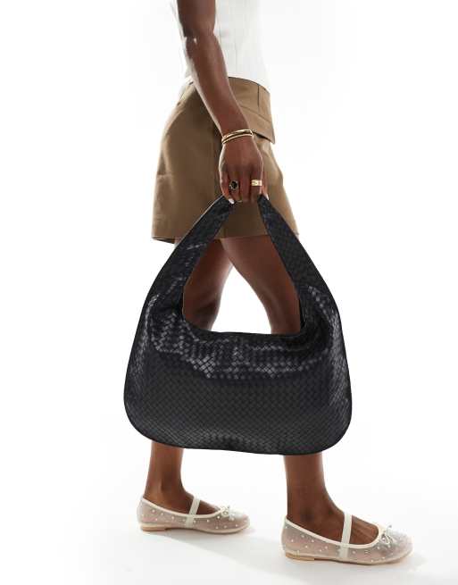Glamorous – Svart, vävd toteväska med axelband