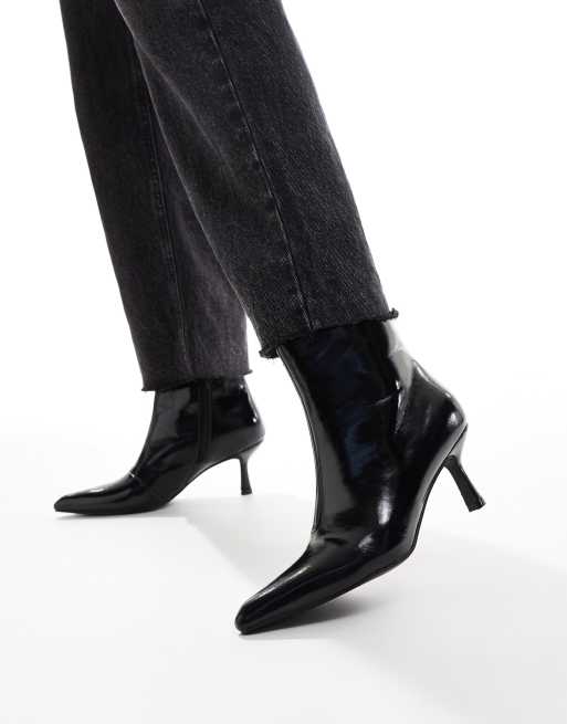 Glamorous – Svarta, krinklade ankelboots med taxklack