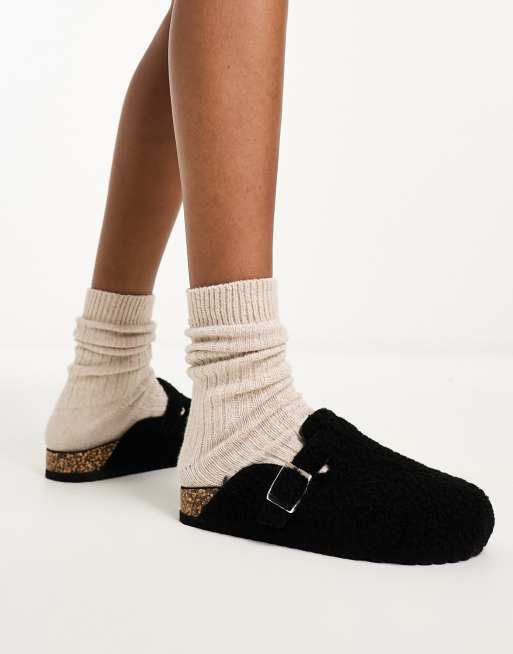 Glamorous – Svarta, platta skor med öppen häl i teddy
