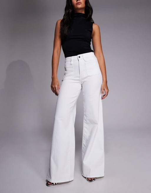 Good American – Good Waist – Vita palazzo-jeans med vida ben och framficka