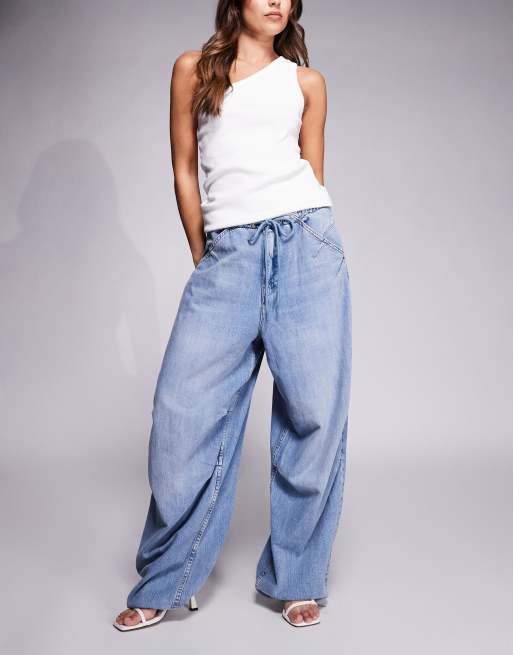 Good American – Lite – Mellanblå fallskärmsbyxor i linneliknande denim