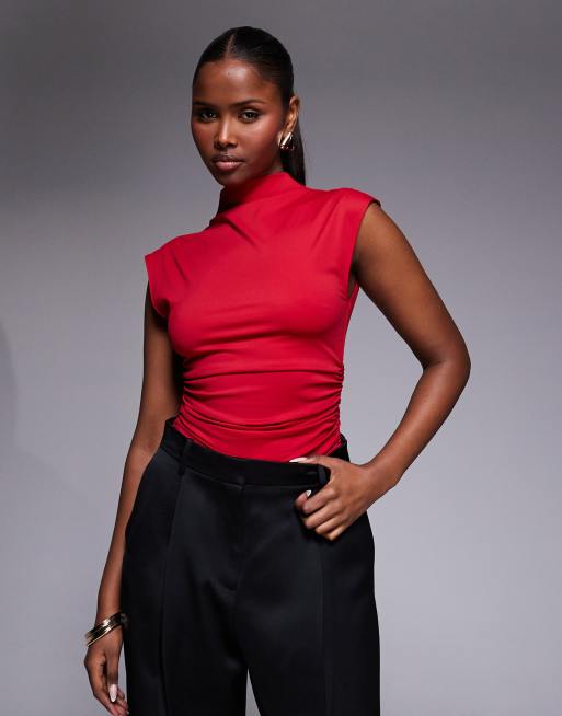 Good American – Röd, lätt, formande, ärmlös body med hög krage