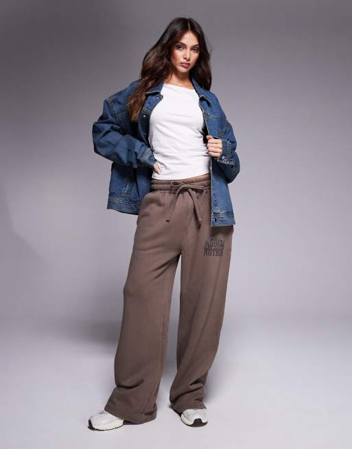 Good For Nothing – Beige mjukisbyxor med raka ben och avslappnad passform