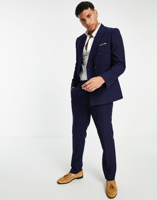 Harry Brown – Blå smal kritstrecksrandig kostym