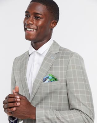 Harry Brown – Grå rutig kostym i linne med smal passform
