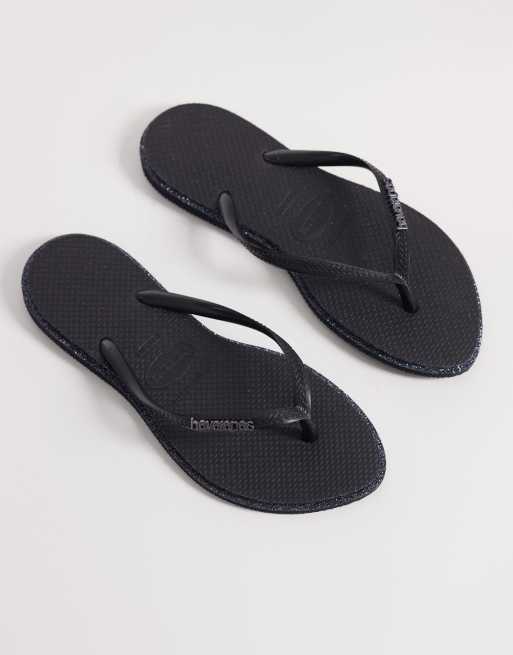 Havaianas – Svarta, glittriga, smala flip flops med spetsig tå