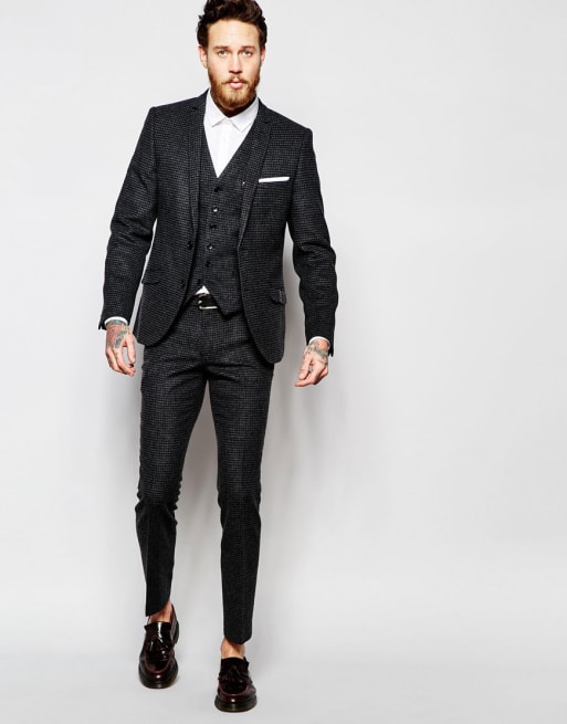 Heart & Dagger – Grafitgrå hundtandsmönstrad kostym med extra smal kostym