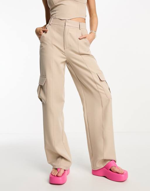 Heartbreak – Beige cargobyxor med dekorativ söm, del av set
