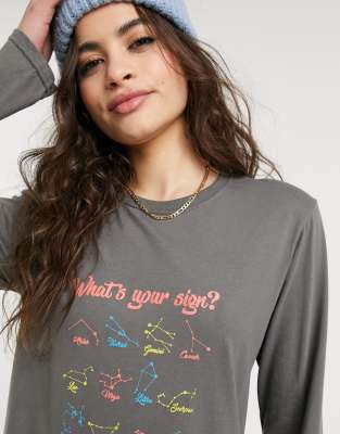 Heartbreak – Grafitgrå långärmad t-shirt med stjärntecken