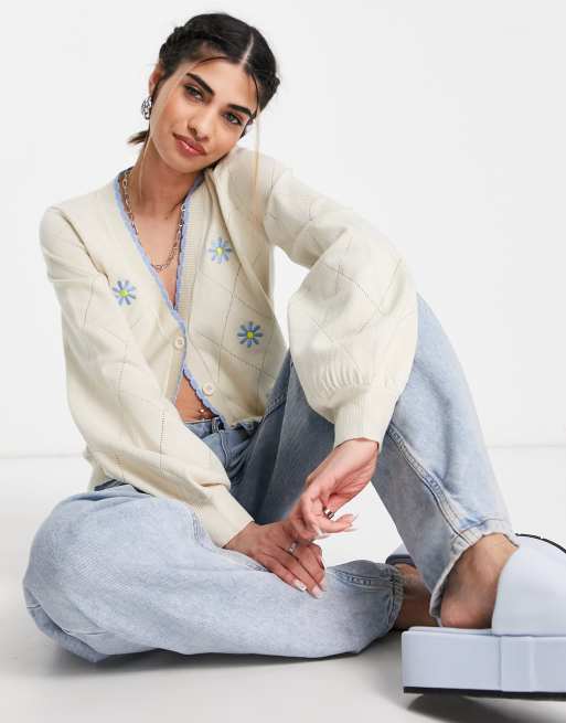 Heartbreak – Krämvit kofta med blommigt broderi