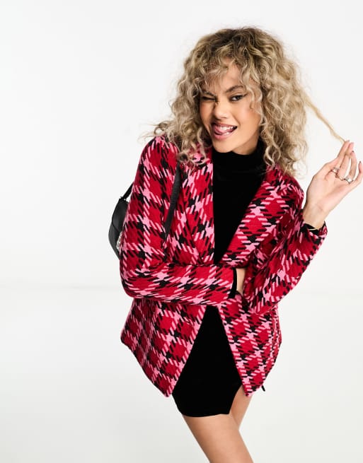 Heartbreak – Rosa, rutig, dubbelknäppt kavaj i bouclé