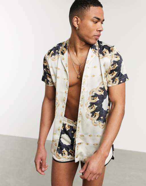 Hermano – Skjorta med fritidskrage och vädursmönster, del av set