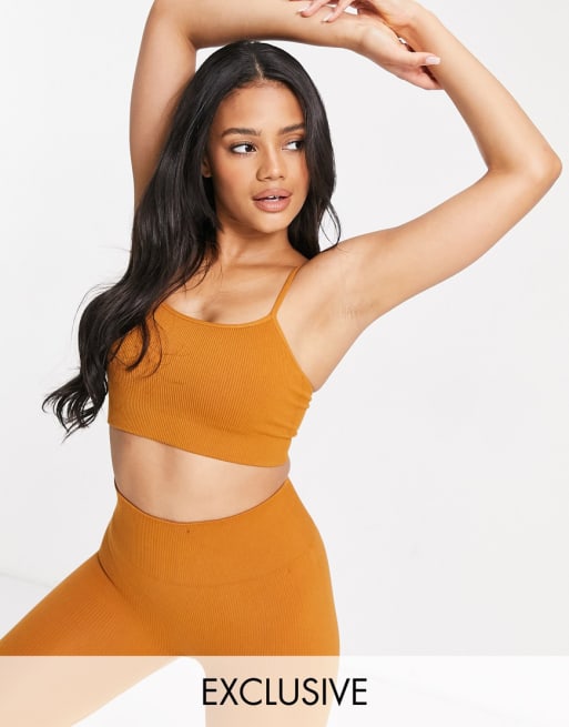 HIIT – Kamelfärgad ribbad behå och leggings – Endast hos ASOS