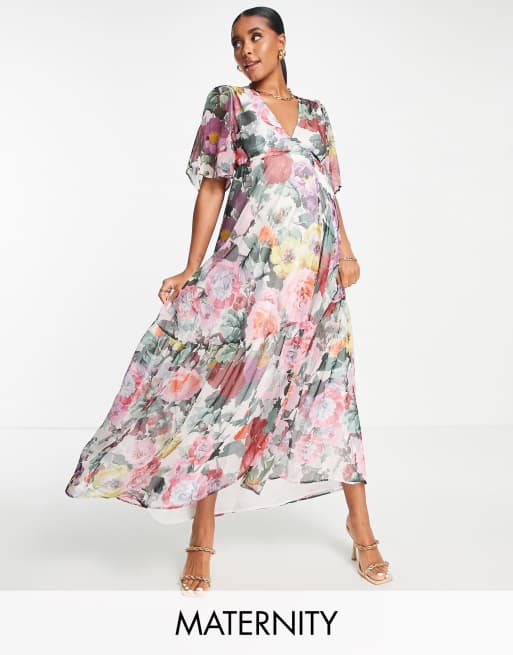 Hope & Ivy Maternity – Frankie – Rosa maxiklänning i omlottdesign