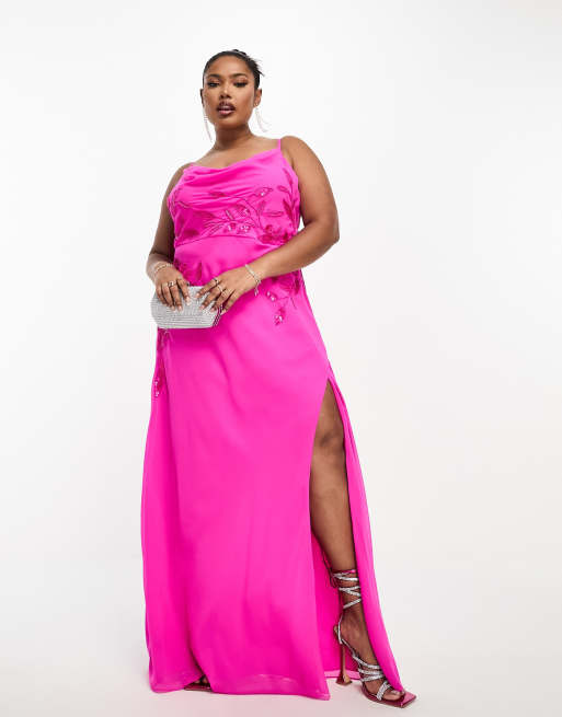Hope & Ivy Plus – Rosa utsmyckad maxiklänning med draperad ringning