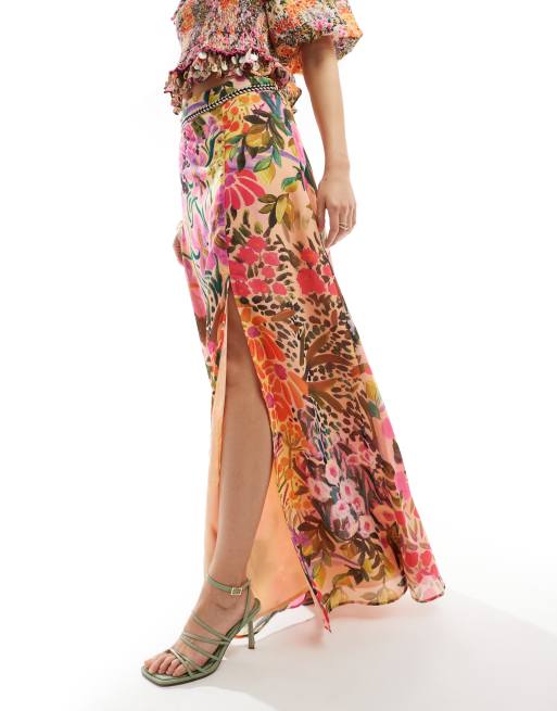 Hope & Ivy – Blommig maxikjol med lårslits, del av set