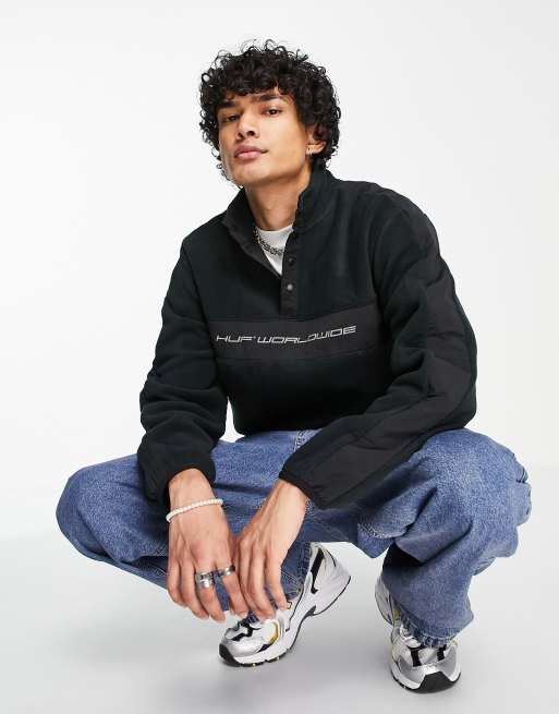 HUF – Cascade – Svart tröja i polarfleece med tryckknappar vid halsen