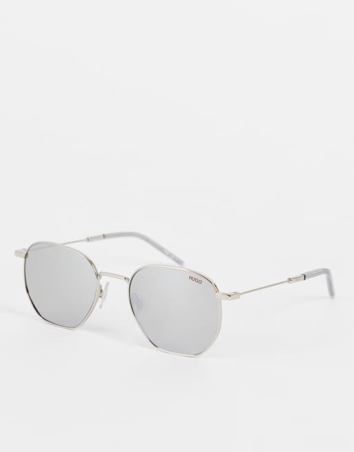 Hugo – Silverfärgade runda solglasögon med spegelglas