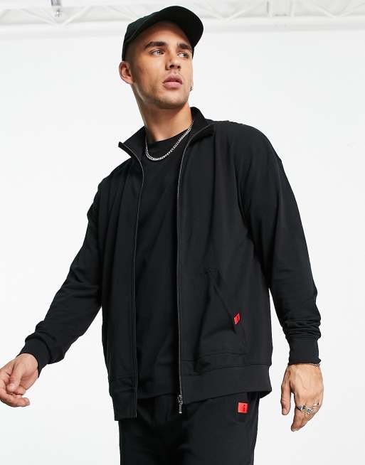 HUGO – Bodywear Labelled – Svart sweatshirt med dragkedja och logga på axlarna