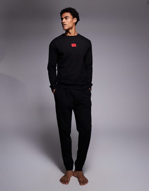 HUGO Bodywear – Svart pyjamas med röd logga i presentförpackning