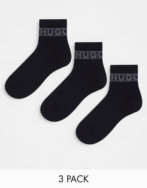 HUGO Bodywear – Svarta strumpor med ribbmönster och trekvartslångt skaft, 3-pack