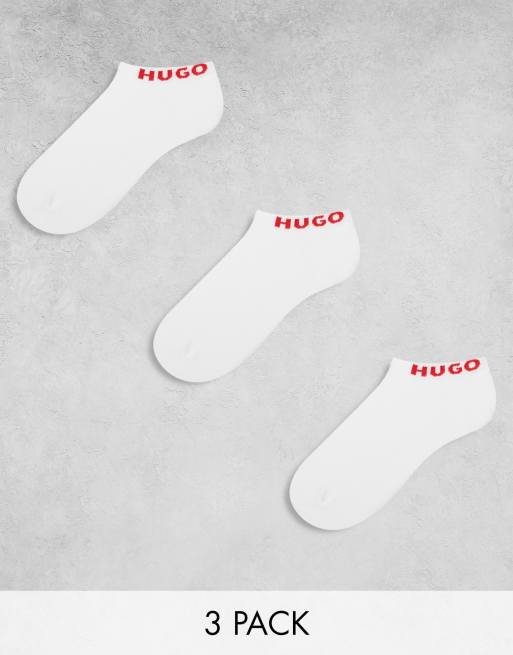 HUGO – Bodywear – Vita, låga strumpor med logga, 3-pack