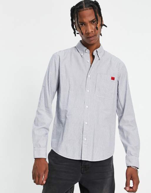 HUGO – Evito – Vit skjorta med smal passform och kritstrecksränder