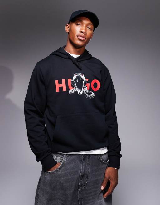 HUGO Red – Dueleyo – Svart huvtröja med ormtryck