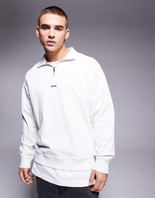 HUGO Red – Durty – Naturvit sweatshirt med halvlång dragkedja