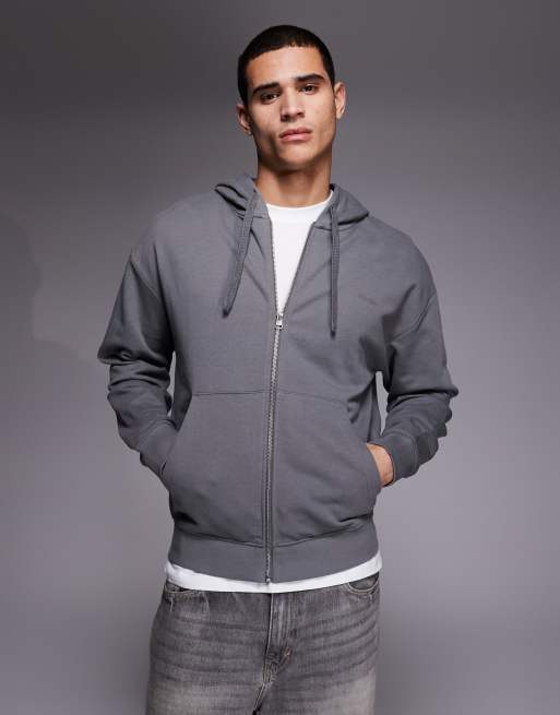 HUGO Red – Mörkgrå huvtröja med dragkedja