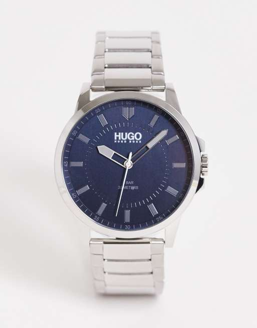 HUGO – Silverfärgad armbandsklocka med mörkblå urtavla