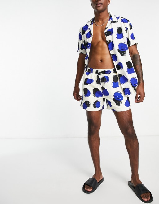 Hunky Trunks – Vitt och svart strandset med suddiga prickar