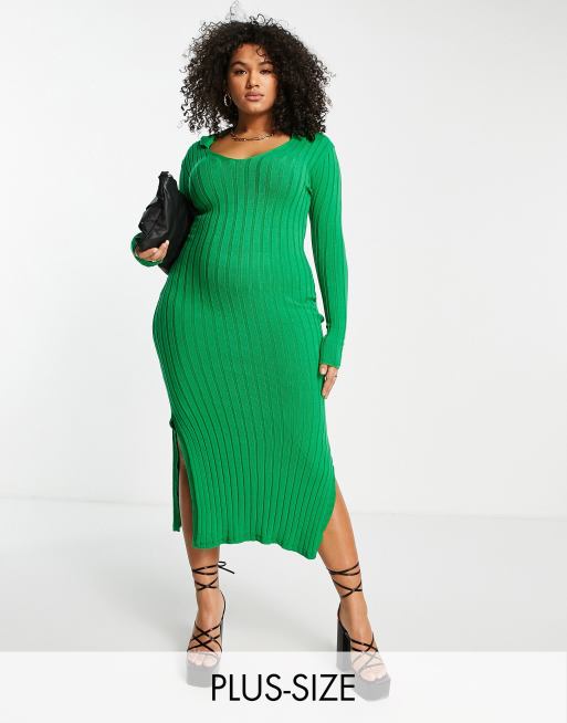 I Saw It First Plus – Grön ribbad midiklänning med sidoslits